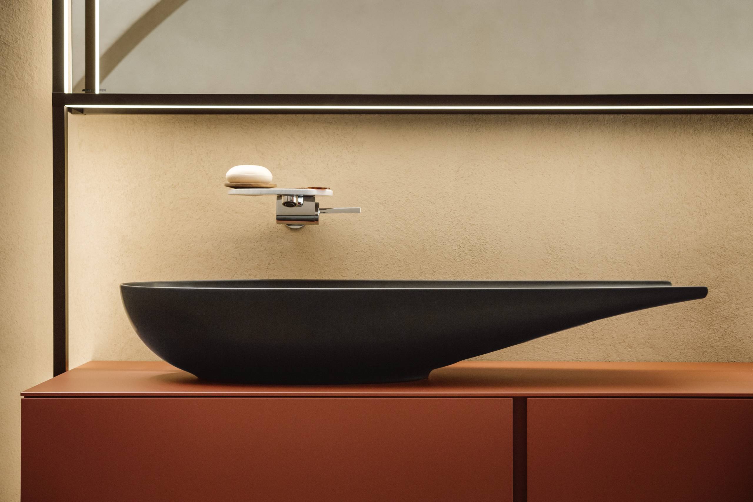 Ein besonderes Highlight stellt hier die Weiterentwicklung der LAUFEN Kult-Kollektion ILBAGNOALESSI mithilfe der Saphirkeramik dar. Designer Stefano Giovannoni experimentierte mit diesem besonderen keramischen Material und entwarf neue Keramikobjekte mit großzügigen, weichen und fließenden Formen, die einen leichten und feinen Eindruck vermitteln. Teil des Updates sind zudem neue Oberflächen- und Farbvarianten. Die Keramiken und Badewannen dieser Kollektion sind nicht nur in klassischem Weiß glänzend erhältlich, sondern auch in Weiß matt, Schwarz matt und in der neuen Trendfarbe Café matt. Alle Saphirkeramik Produkte werden von LAUFEN am Standort Gmunden in Oberösterreich gefertigt.