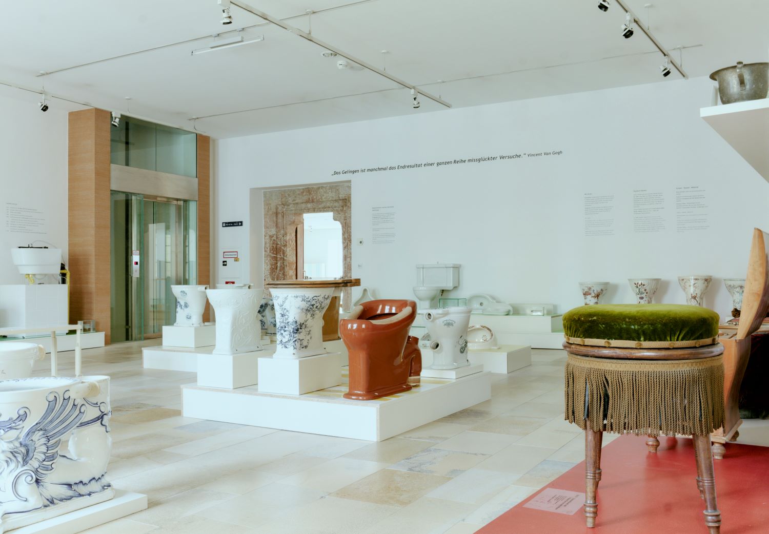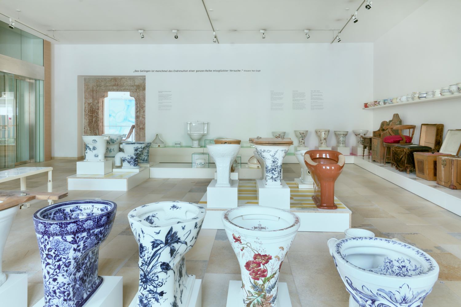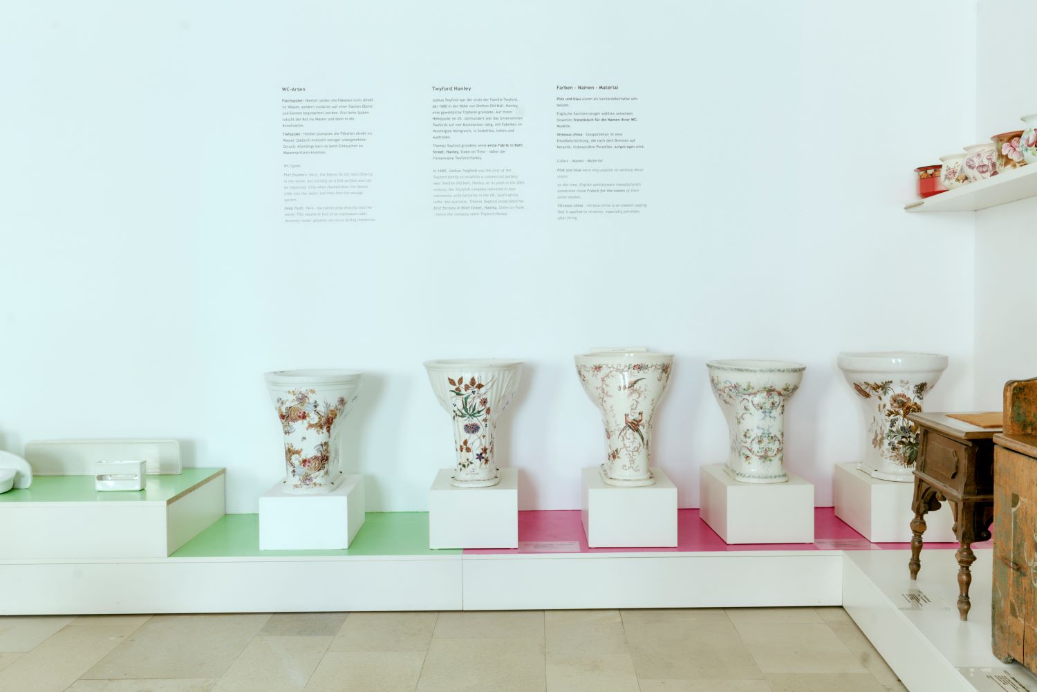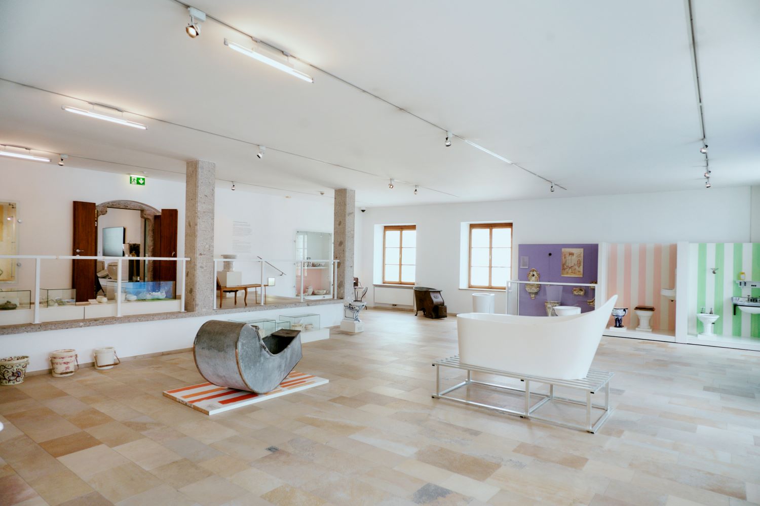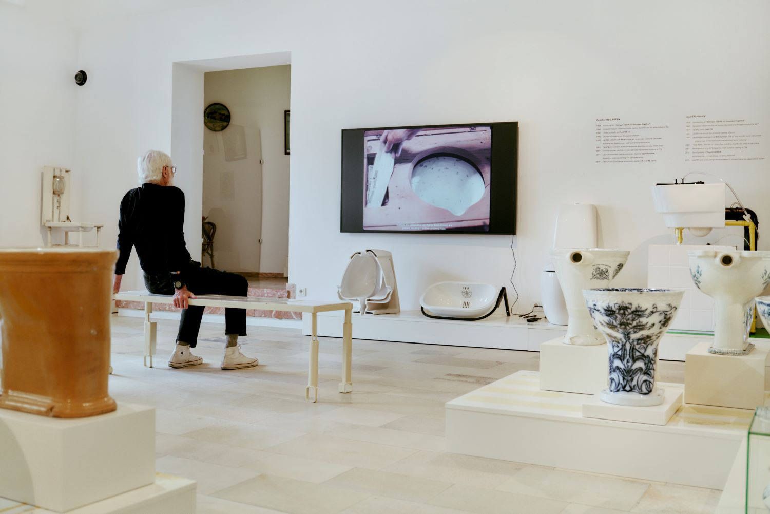 Anlässlich des 100-jährigen Jubiläums des LAUFEN Werks Gmunden wurde die Ausstellung des Klo & So im Kammerhof Museum Gmunden neu zusammengestellt. Kuratiert von der österreichischen Künstlerin Petra Zechmeister, laden die präsentierten Objekte aus der Sammlung von LAUFEN Austria zu einer Reise durch die Geschichte des WCs und der Sanitärkeramik ein. Die Schau beleuchtet außerdem die soziale Tragweite der Toilette – bis heute hat fast die Hälfte der Menschheit keinen Zugang zu einer sicheren sanitären Anlage.