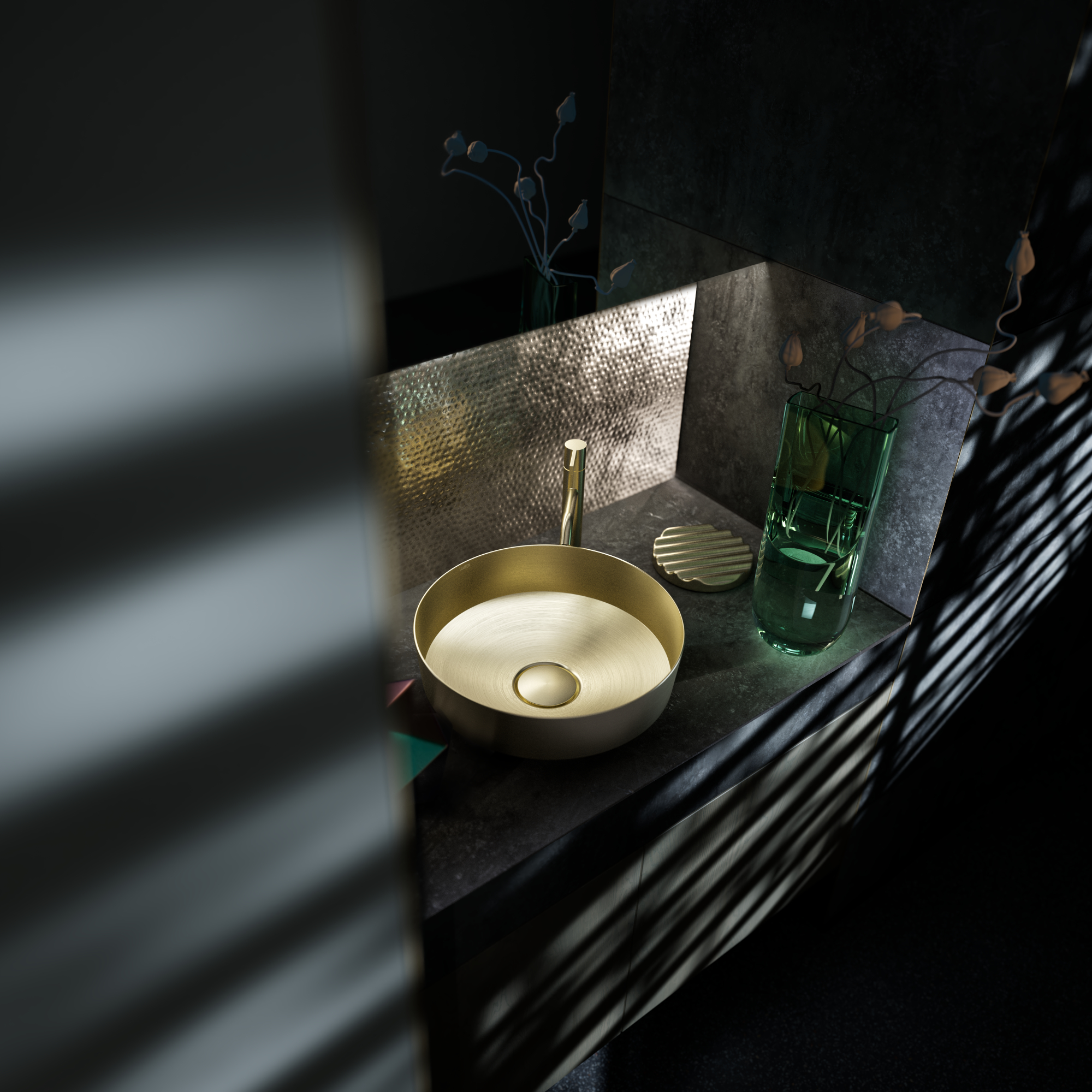 Begleitet wird die Portfolioerweiterung von einer neuen Gestaltungswelt: Sie zeigt VITREON Stahl nicht isoliert, sondern eingebettet in das LAUFEN Universum – kombiniert mit Armaturen, Möbeln, Spiegeln und Accessoires aus dem Premium-Sortiment der Marke. Tiefes Anthrazit, dunkler Marmor und schwarze Armaturen verleihen den Räumen eine ruhige, ausbalancierte Stärke – eine Atmosphäre, in der alle Materialien dieselbe gestalterische Sprache sprechen. VITREON Stahl fügt sich harmonisch in dieses Bild: als Oberfläche, die Licht präzise reflektiert und klare Konturen betont. So wird sichtbar, was die Integration des glasierten Stahls leistet: Sie macht den Waschtisch und seine Begleiter zur Visitenkarte des gesamten Bades.