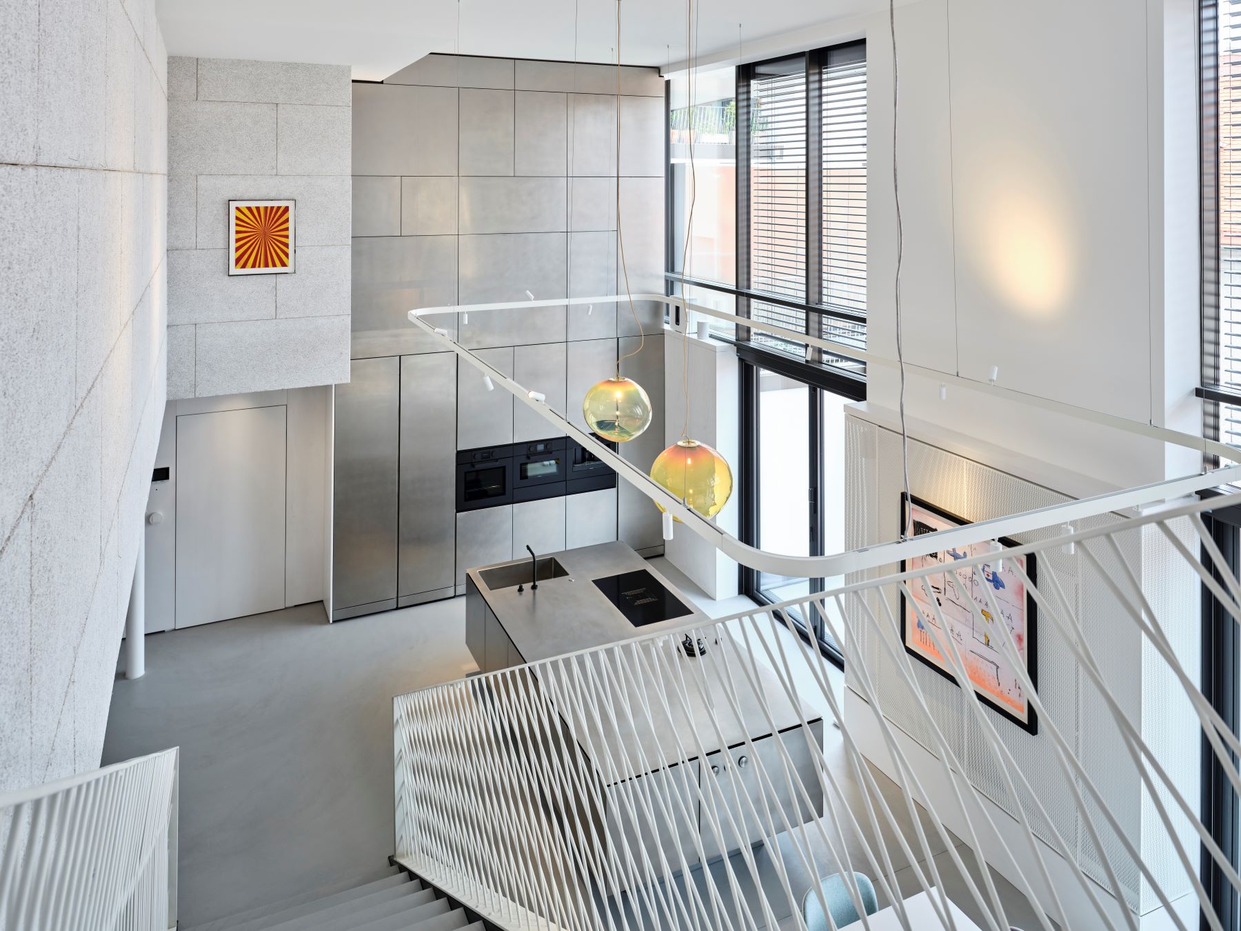 Ein neutral gehaltener, offener Raum, der bewusst auf klassische Unterteilungen verzichtet, dient als Bühne für ausgewählte, individuell gestaltete Einrichtungsobjekte – jedes einzelne von hoher gestalterischer Qualität. Ob Küche, Sofa, Esstisch oder Badewanne: Alle Elemente werden gleichwertig behandelt und als Teil einer harmonischen Komposition verstanden.
