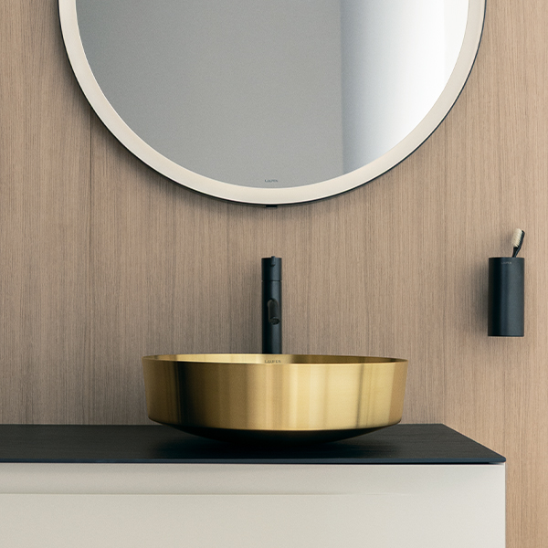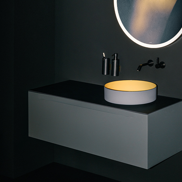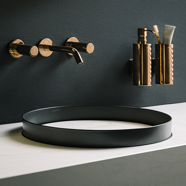 Die Einführung von VITREON Stahl bereichert die visuelle Welt von LAUFEN um eine stimmungsvollere Farbpalette, die dunkle Töne, satte Metallic-Farben und schwarze Armaturen zu einer zeitgemäßen Designsprache verbindet. Die Kollektion fügt sich nahtlos in die Möbelkollektionen von LAUFEN ein und schafft eine warme, raffinierte Ästhetik, die sich durch lebendige Oberflächen und einzigartige haptische Effekte auszeichnet.